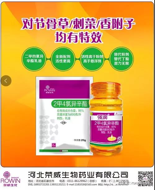 1、適用溫度更寬,安全性高,低溫情況下,不易產(chǎn)生藥害,藥效穩(wěn)定。2甲4氯鈉鹽≤15℃情況下使用容易對作物造成藥害.2甲4氯異辛酯最低適宜溫為10℃;