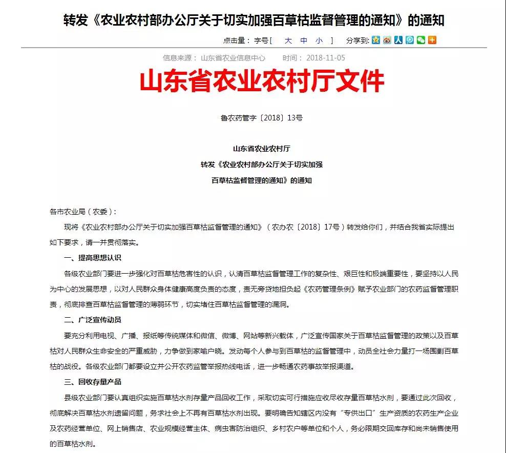 現(xiàn)將《農(nóng)業(yè)農(nóng)村部辦公廳關(guān)于切實加強百草枯監(jiān)督管理的通知》(農(nóng)辦農(nóng)〔2018〕17號)轉(zhuǎn)發(fā)給你們,并結(jié)合我省實際提出如下要求,請一并貫徹落實。