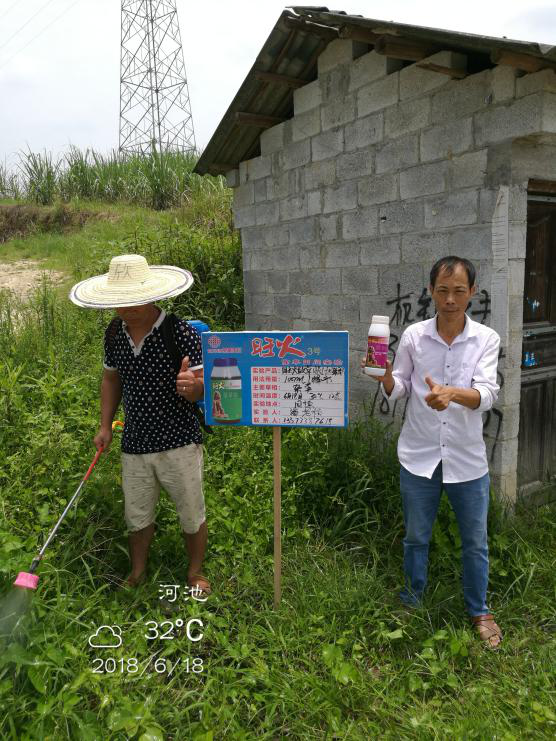 2018.6.18日,在廣西河池,由河北榮威牛經(jīng)理帶領(lǐng),進(jìn)行了一場關(guān)于“旺火3號(hào)”的藥效試驗(yàn),可以看出2天后雜草已經(jīng)萎蔫并干枯的狀態(tài),可以說效果是非常理想的。
