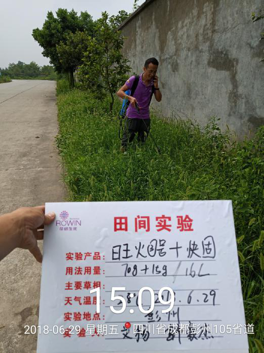 2018年6月29日,由河北榮威韓經(jīng)理在四川成都彭州做了一場關于旺火3號+快固的藥效試驗,可以明顯看出10天以后,雜草已全部死亡。