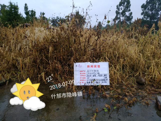 2018年7月5日,在四川省什邡市隱峰鎮(zhèn),由河北榮威南經(jīng)理及其帶領(lǐng)的實(shí)習(xí)生,在此進(jìn)行了一場(chǎng)關(guān)于“旺火加強(qiáng)版”(敵草快)的藥效實(shí)驗(yàn),5天后可看出雜草已經(jīng)全部萎蔫變黃。