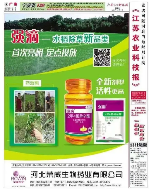 熱烈慶祝榮威藥業(yè)---強(qiáng)滴(水稻專用)產(chǎn)品首次亮相,便受到江蘇農(nóng)業(yè)科技報(bào)重點(diǎn)關(guān)注、并跟蹤報(bào)道。對(duì)公司在江蘇市場(chǎng)的開(kāi)發(fā)有著重大意義!