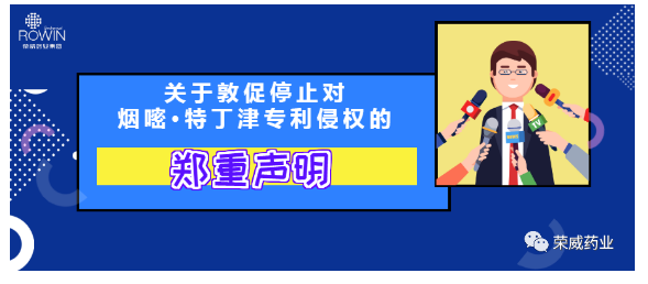 榮威藥業(yè)提醒各位友商、同行能引起重視,相信同行企業(yè)尊重知識產(chǎn)權(quán)、尊重專利人利益,避免引發(fā)法律風(fēng)險承擔(dān)法律責(zé)任。