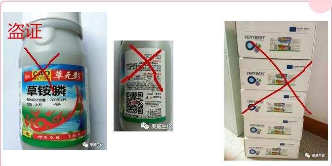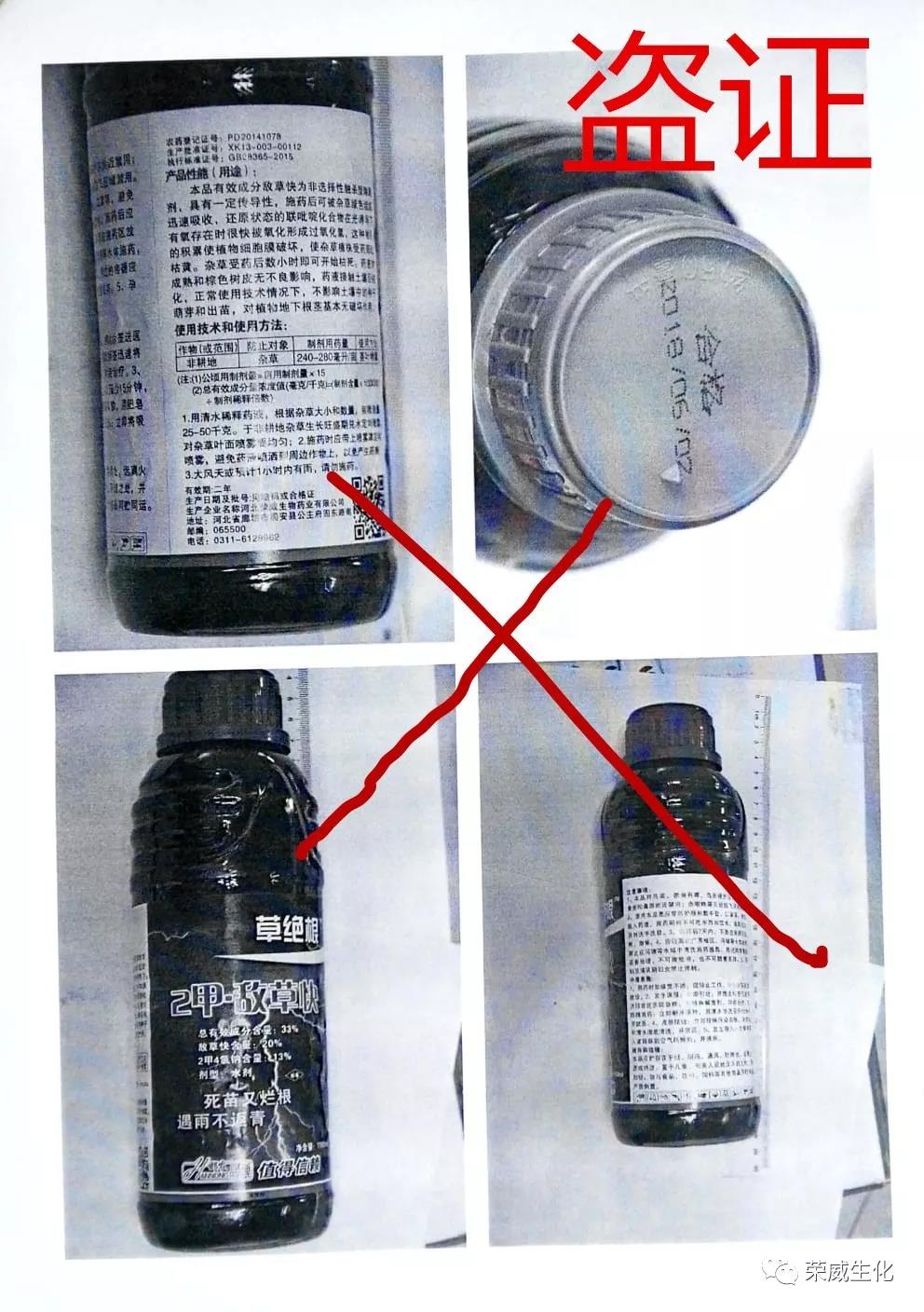 榮威生化是全國除草劑優(yōu)秀品牌之一,自公司成立以來一直堅持效果至上、品質(zhì)為先,旗下各款產(chǎn)品一直廣受消費(fèi)者及經(jīng)銷商朋友的好評與青睞。在百草枯退市的大背景下,榮威生化敵草快、草銨膦系列產(chǎn)品在業(yè)內(nèi)開始熱銷并開始引領(lǐng)潮流,有人引領(lǐng)熱點(diǎn),有人跟風(fēng),更有利益熏心者乘火打劫------假冒造假!此時一些不法分子聞風(fēng)而動,開始冒用我公司證件、假冒我公司產(chǎn)品。
