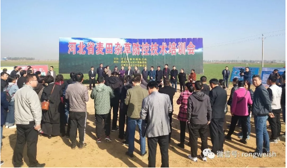 河北省植保植檢總站主辦的《河北省麥田雜草防控技術培訓會》于2019年10月30日在邯鄲·永年區(qū)順利召開。會議主體分為室內培訓和麥田現(xiàn)場觀摩兩部分,參加會議的有全省11個市的農(nóng)業(yè)農(nóng)村局領導、植保站各相關領導及植保機械、藥劑、助劑廠家和種糧大戶等200余人。榮威生化作為農(nóng)藥企業(yè)受邀參加了本次培訓會。