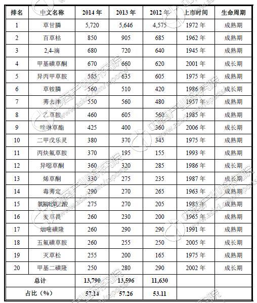 2012-2014 年除草劑全球銷售前 20 產(chǎn)品情況
