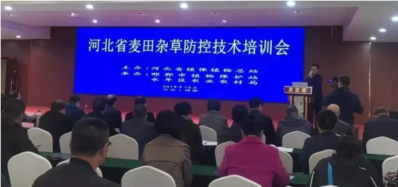河北省植保植檢總站主辦的《河北省麥田雜草防控技術培訓會》于2019年10月30日在邯鄲·永年區(qū)順利召開。會議主體分為室內培訓和麥田現(xiàn)場觀摩兩部分,參加會議的有全省11個市的農(nóng)業(yè)農(nóng)村局領導、植保站各相關領導及植保機械、藥劑、助劑廠家和種糧大戶等200余人。榮威生化作為農(nóng)藥企業(yè)受邀參加了本次培訓會。